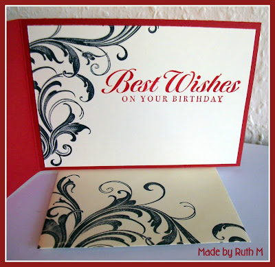 Then I stamped the flourish again on a vanilla panel for inside the card and added a birthday sentiment. The envelope also got a flourish.