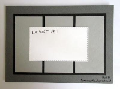 Take two different pieces of 12" x 6" patterned paper, place them in a trimmer with the 12" side at the top and cut 4 1/2" off and then cut 4" off. This will leave you with six pieces - two 4 1/2" x 6" pieces (Layout #1), two 4" x 6" pieces (Layout #2) and two 3 1/2" x 6" pieces (Layout #3).